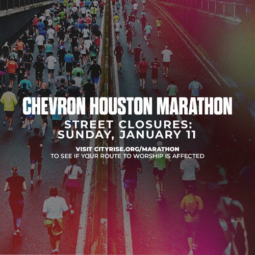 Also this Sunday is the annual Chevron Houston Marathon. If you’re new to Houston, this is a citywide event that affects travel in ways you might not expect! The route passes just a block from our West U Baptist campus through University Blvd, and major exits and roads will close for much of the morning. Even if you plan to attend Bellaire or Missouri City, your usual route could still be impacted depending on where you’re coming from. Please plan ahead using the marathon map via cityrise.org/marathon so your drive to worship doesn’t start to feel like you accidentally entered the marathon.