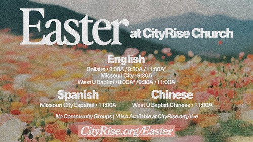 You can find all of our Easter service times and special Easter-related events at cityrise.org/easter.